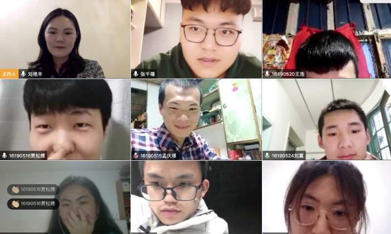 线上班会活动,向同学们传达了学校和学院在疫情期间教育教学、日常管理方面的安排,并深入调查了同学们近期的线上学习情况,为同学们在疫情防控期间的学习提供了建议与帮助。希望同学们能够提高自律意识,积极配合线上教学工作,充分利用网络教育资源,努力学习,共克时艰!