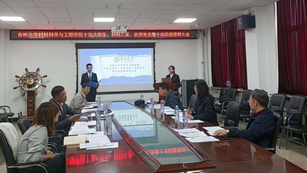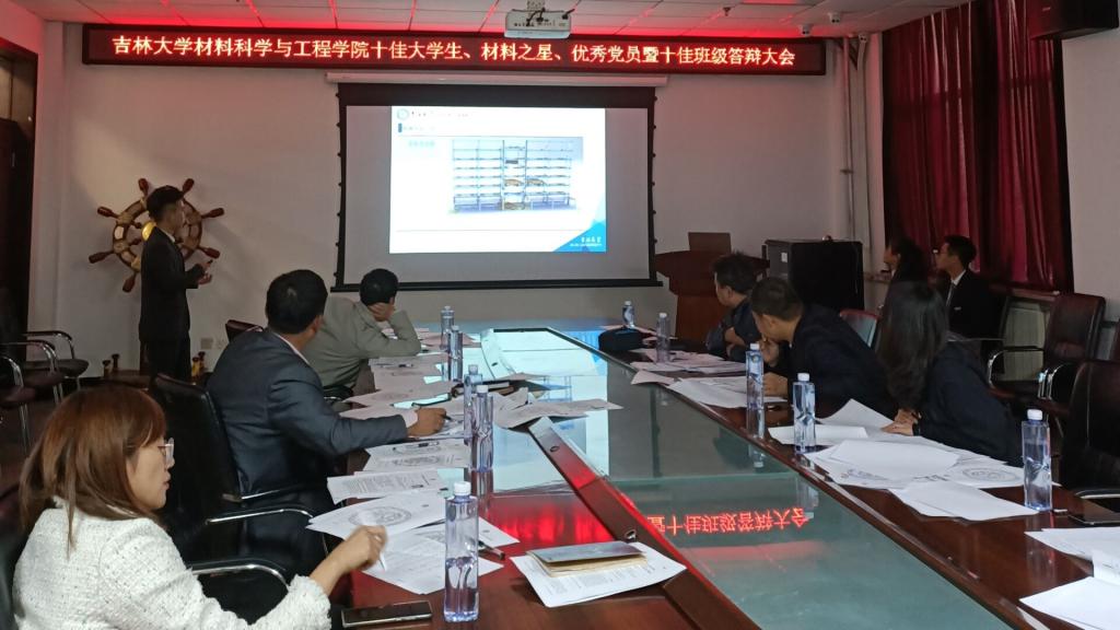 2019-2020年度十佳大学生、材料之星、优秀党员暨十佳班级答辩大会”。党委副书记兼副院长李东生老师,各系主任及学生工作办公室的各年级辅导员老师作为评审出席了本次答辩会。