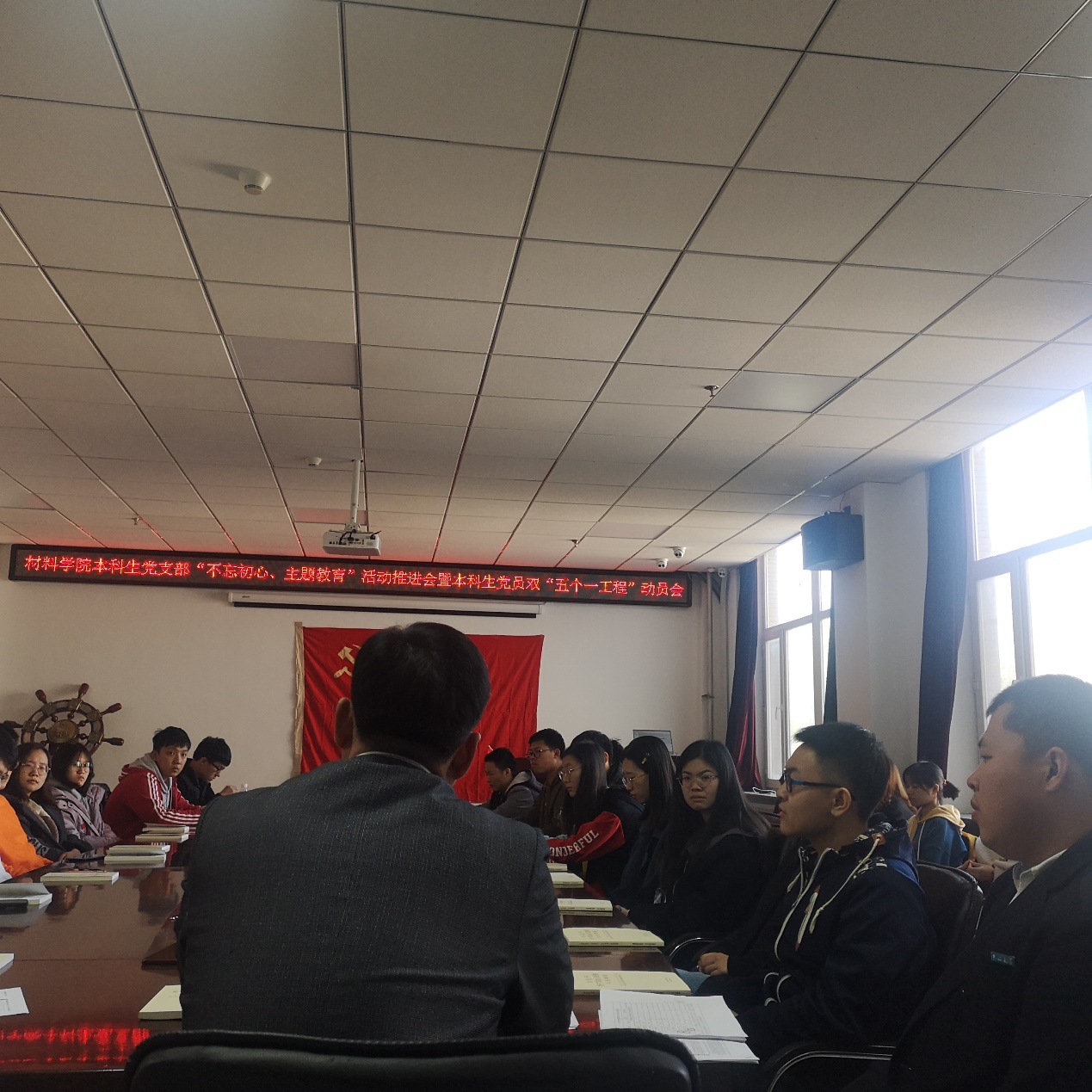 本科生党支部特开展双“五个一工程”,并于2019年10月15日12:30在逸夫机械材料馆410室召开了本次“不忘初心,牢记使命”主题教育活动推进会暨本科生党员双“五个一工程”动员会。