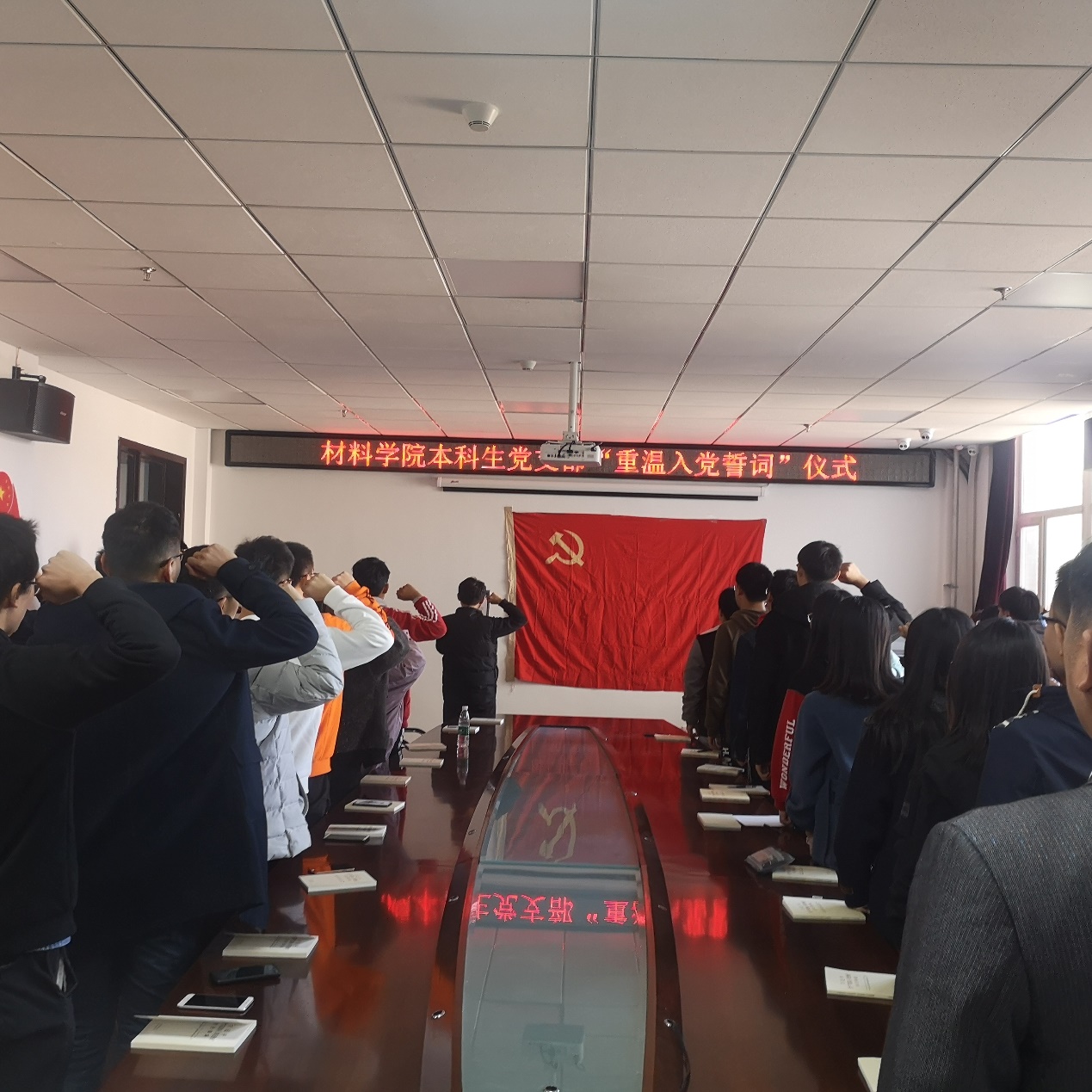 本科生党支部于2019年10月15日12:30在逸夫机械材料馆410室开展了本次”重温入党誓词,不忘入党初心“主题活动。