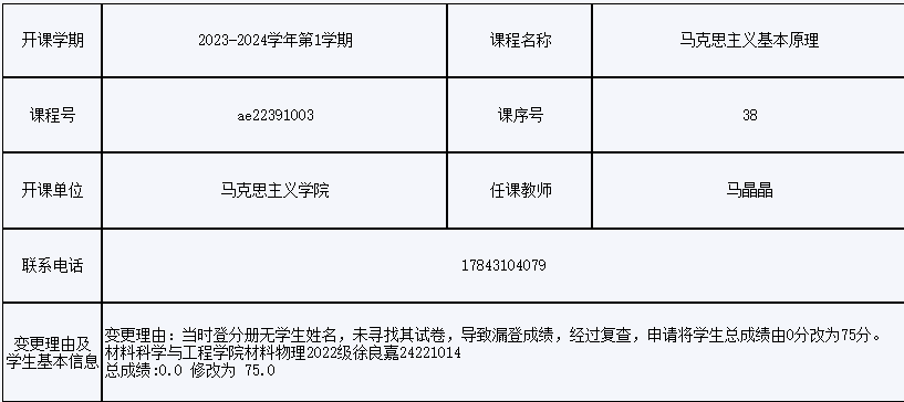 公示日期: 2024年_3月_18日至2024年_3月_22日如有异议请于公示期内向教务处教学运行科反映。联系人: 邹老师 联系电话: 0431-85168962相关材料详见附件:1.色图 考核成绩复查、修改登记表2.学院情况说明(学院教学委员会讨论通过、签字盖章)3.试卷等相关佐证材料