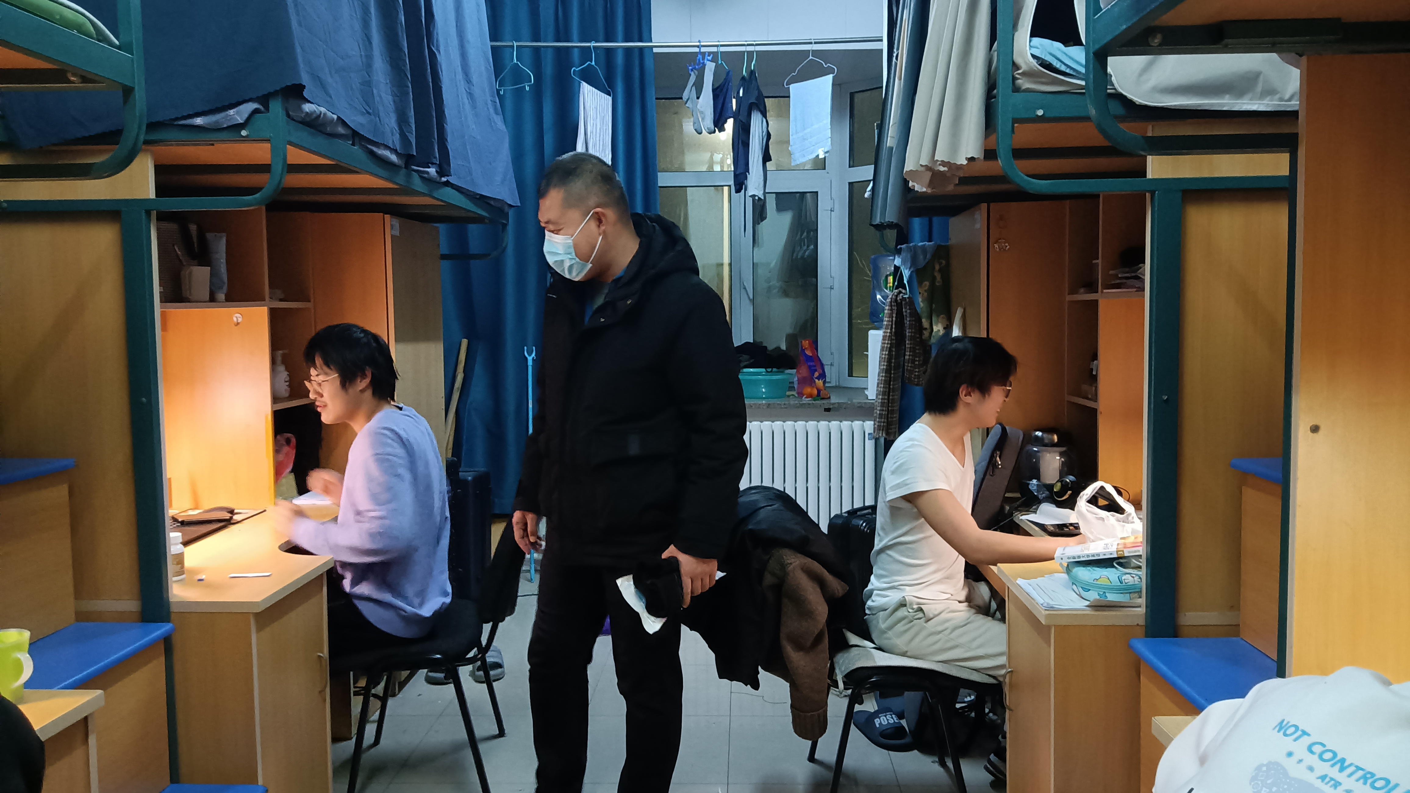 在本次走访寝室的过程中,严冬老师对同学的复习情况进行了解。严冬老师通过与学生面对面交流,进一步了解学生的身心健康状态、学习进展以及遇到的困难和问题,从而为学生提供更具体、更个性化的指导和帮助。
