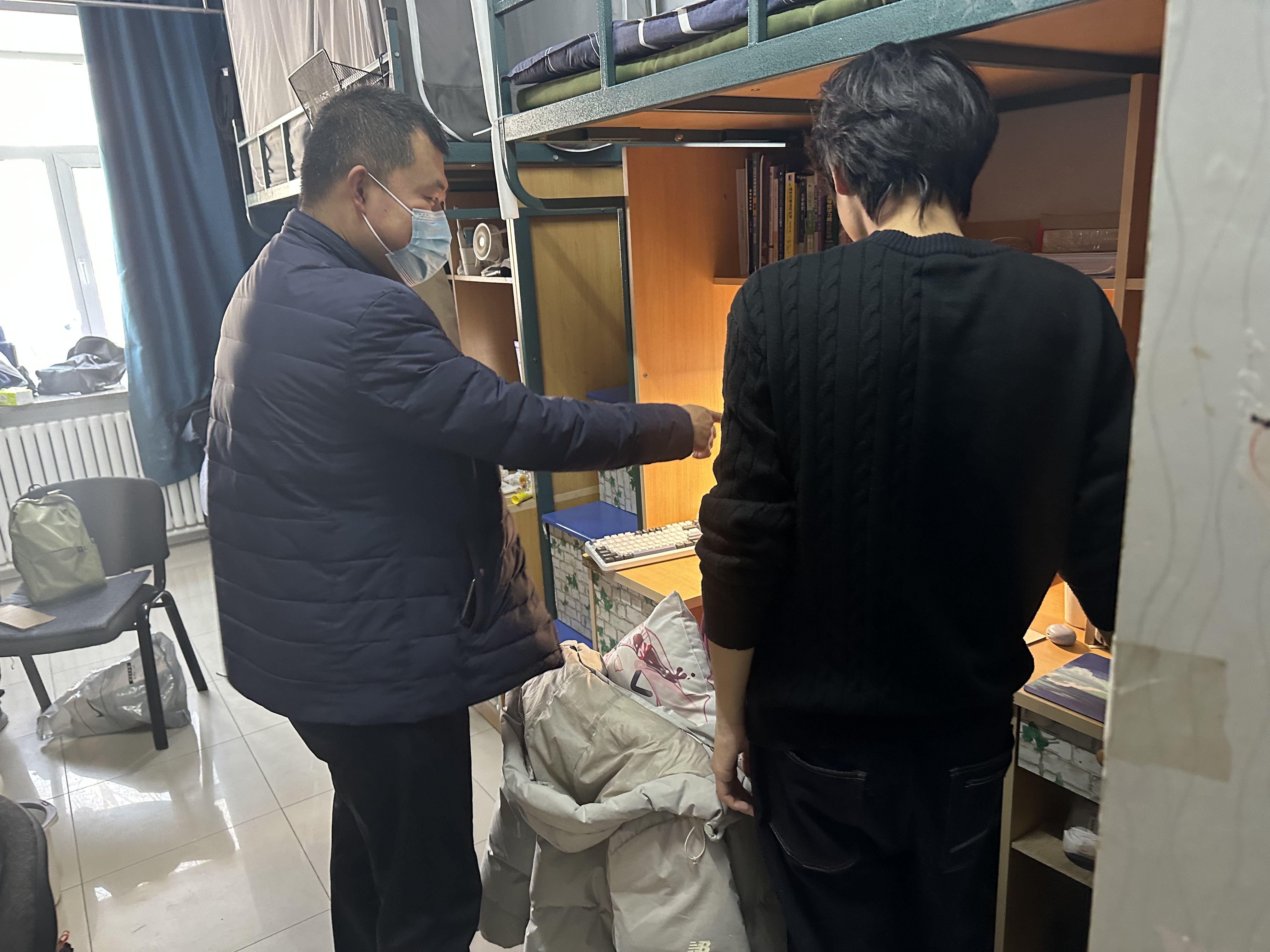 严冬老师每到一间寝室,都详细了解学生们转专业后的学习情况,询问他们是否适应新的课程和教学方式。他还关切地询问了学生们在生活中的困难,并鼓励他们保持积极向上的心态,努力克服转专业带来的挑战。