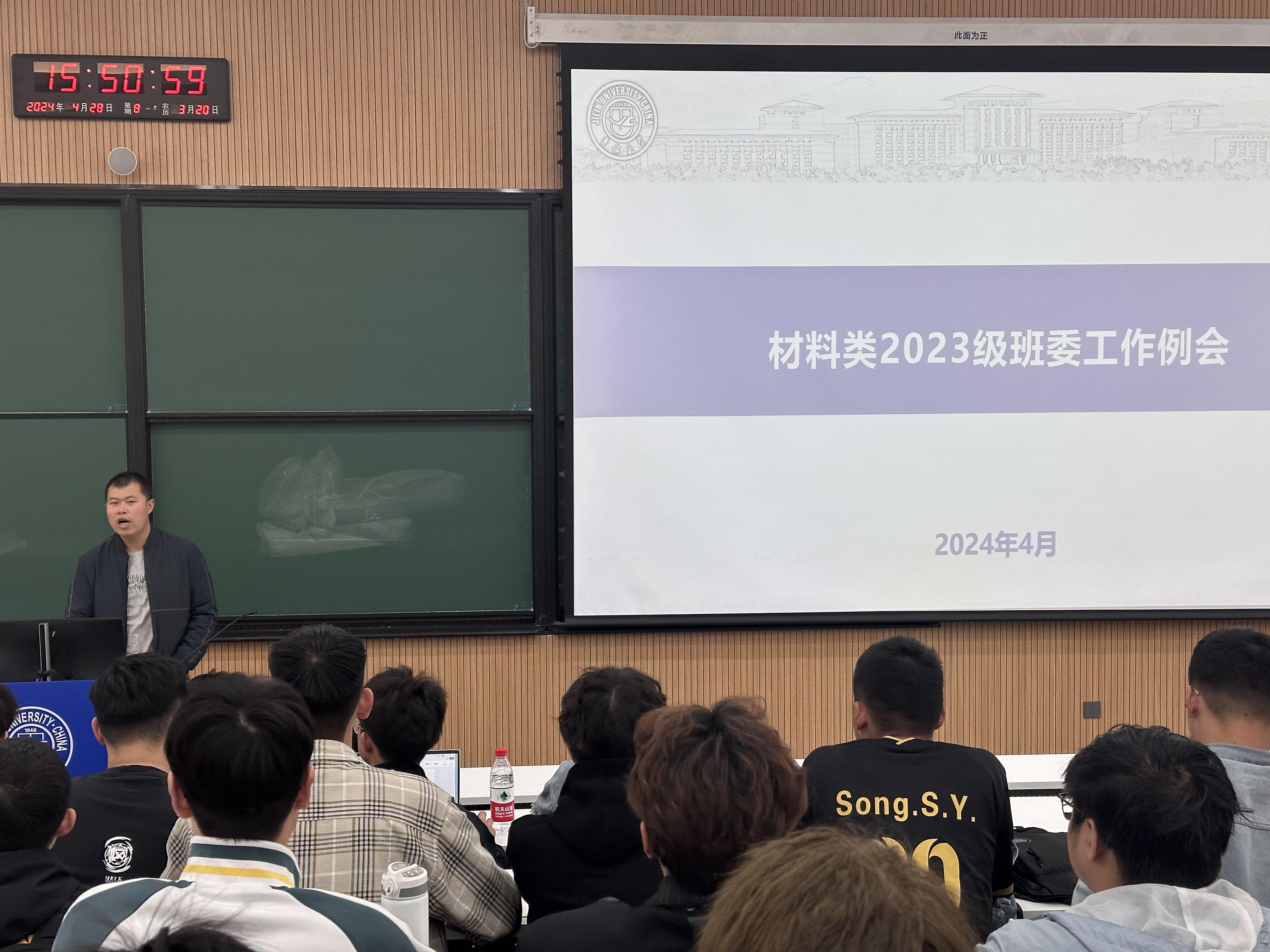 为进一步加强班委成员间的沟通协作,做好期中期间的各项工作,确保劳动节期间本科生管理工作的安全稳定,2024年4月28日,2021级、2023级本科生辅导员严冬老师,组织召开材料类23级班委工作例会。