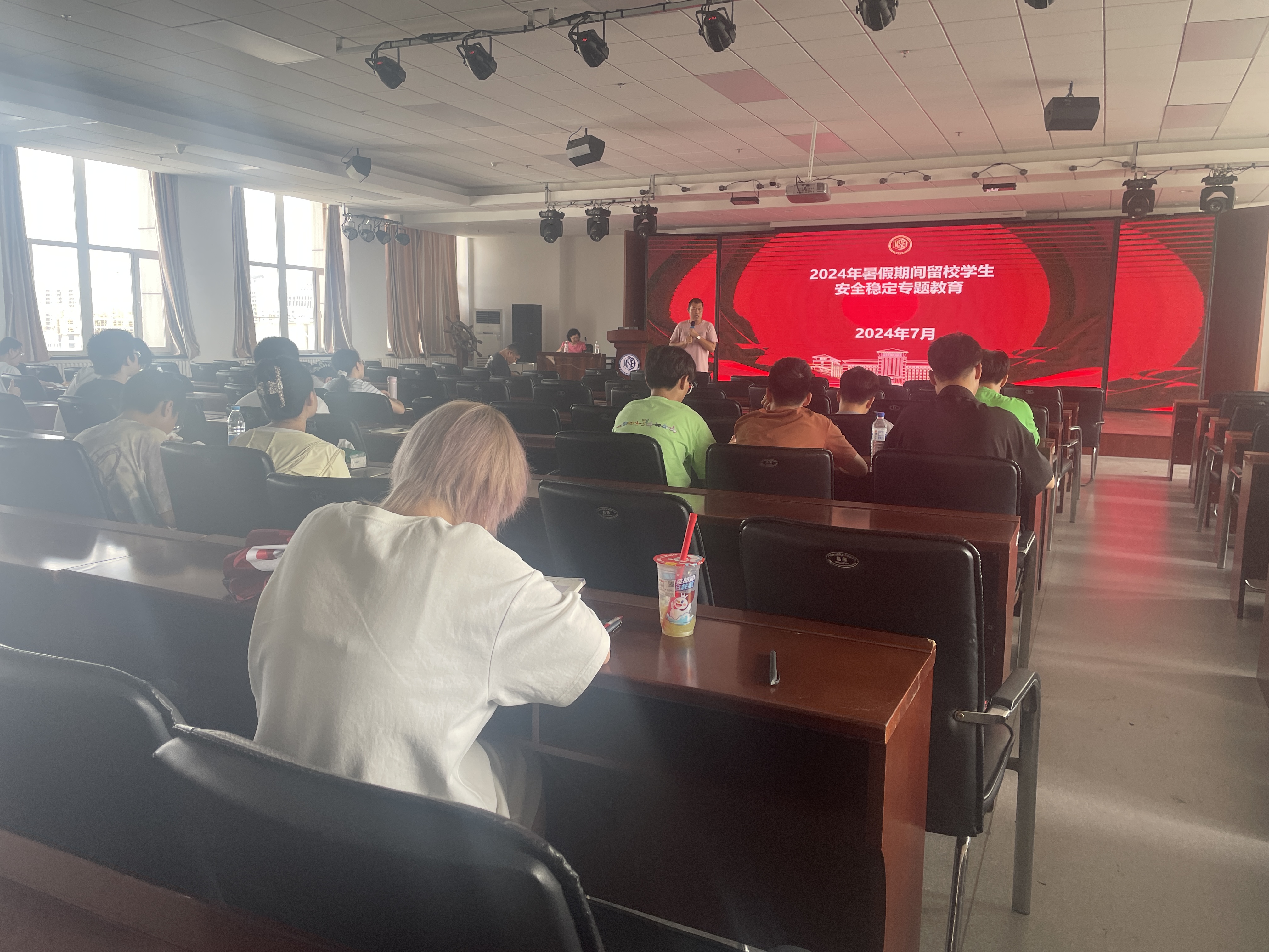 辅导员严冬老师,于2024年7月24日,在学院材料馆8楼会议室召开了留校学生安全稳定专题教育,进行假期安全稳定点名工作。
