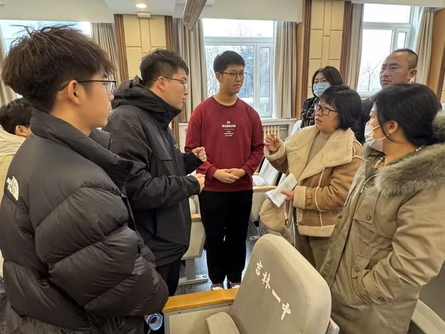 2024级本科生侯力渤,丁梓沫,牛子赫,谢雨桐,王钧,田婧琦所组成的返校宣讲队在2024级辅导员唐运通的带领下,于寒假期间返回母校吉林一中进行宣讲。团队成员结合高中实际情况,制定个性化宣讲方案,通过PPT讲解、互动问答、成长故事分享等形式,分享丰富多彩的大学生活,生动讲述自己在学校的成长与收获,多维度展现色图