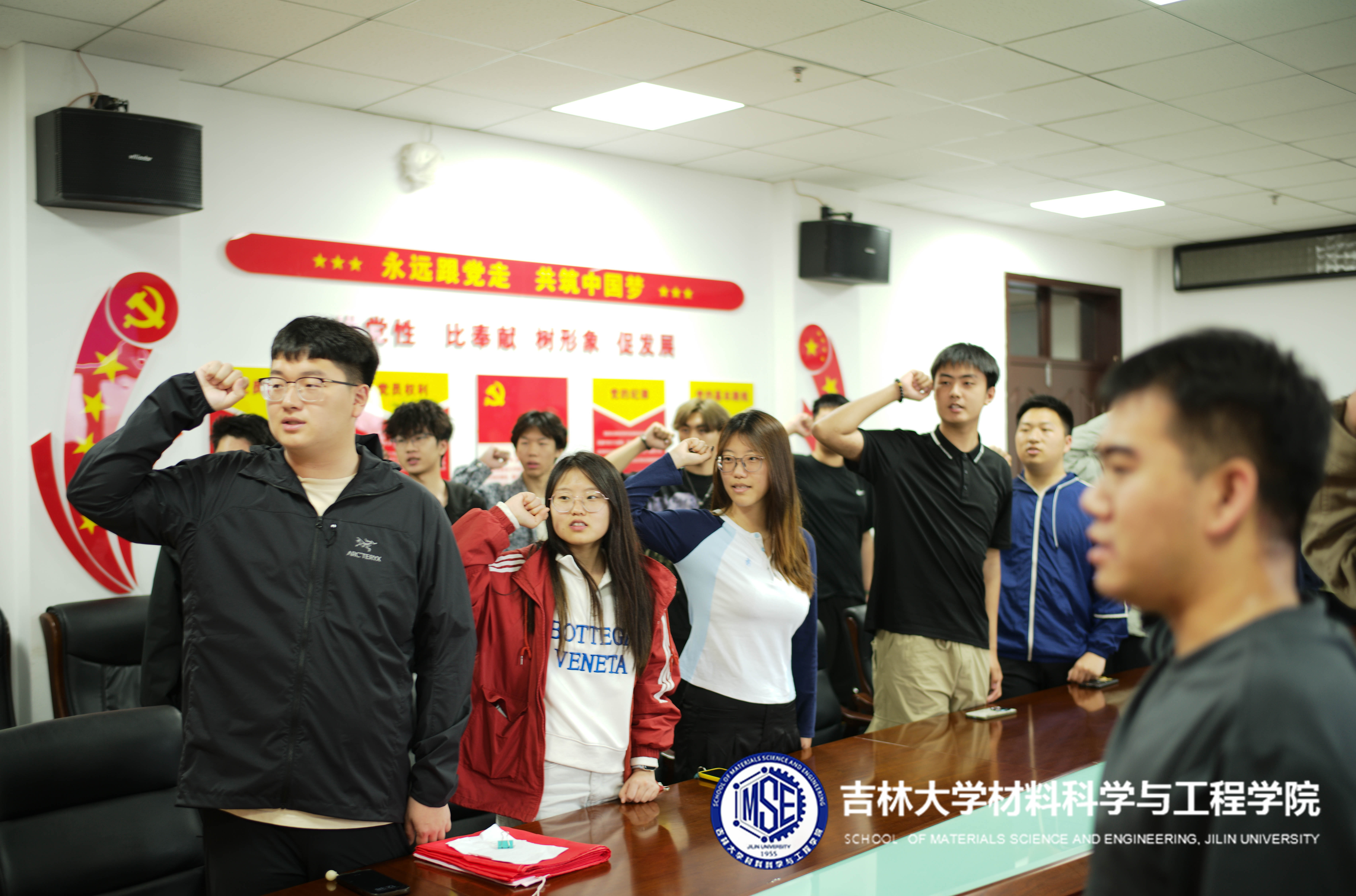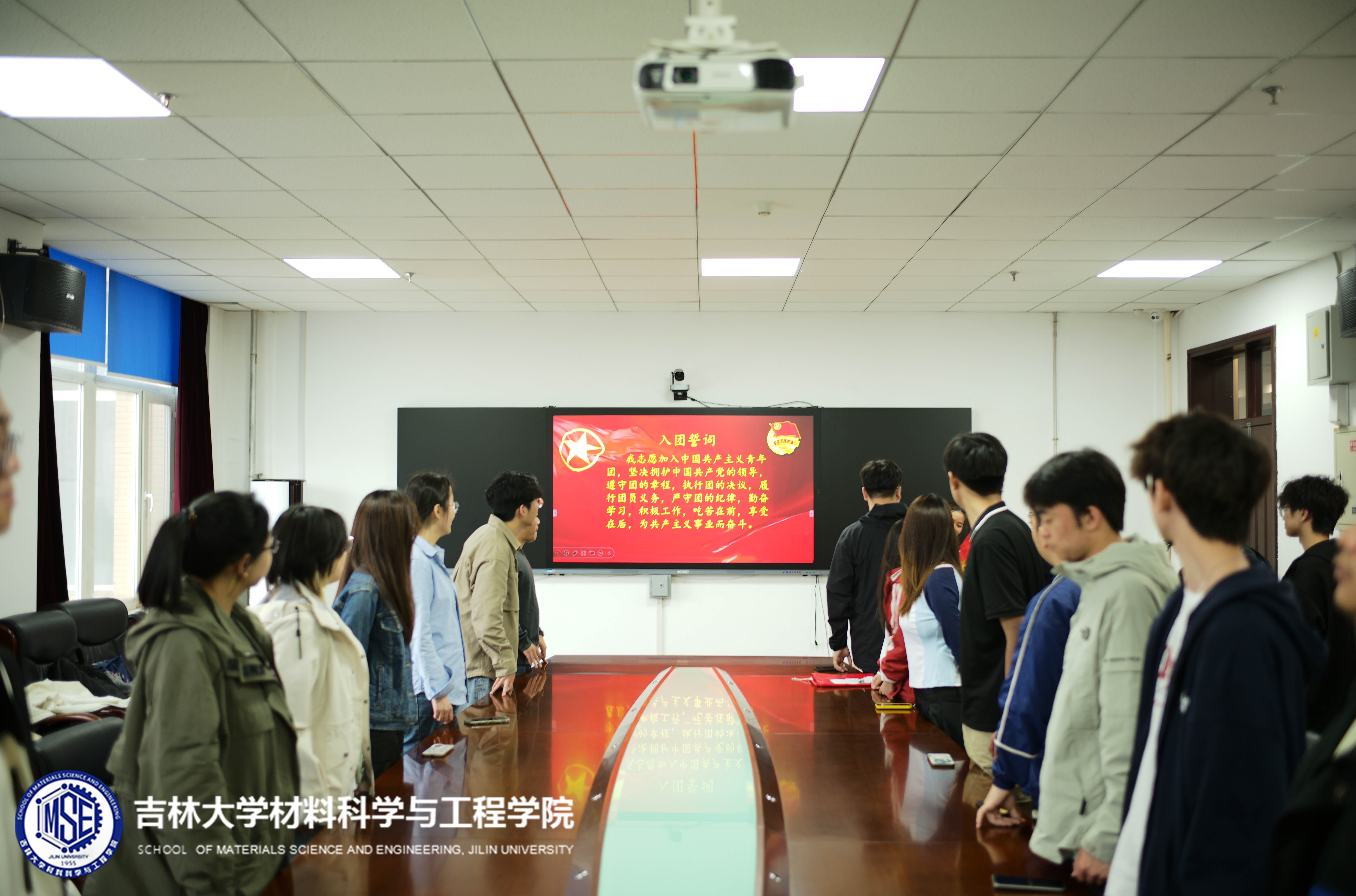 活动伊始,全体起立,奏唱团歌。在鲜艳的团旗下,大家高举右拳,目光坚定,庄严宣誓:“我志愿加入中国共产主义青年团,坚决拥护中国共产党的领导……”铿锵有力的誓言在报告厅内久久回荡,字字句句既是对共青团组织的庄严承诺,也是对初心使命的再次叩问。每一位团员神情肃穆,在宣誓的过程中,深刻感受到作为共青团员的责任与担当。