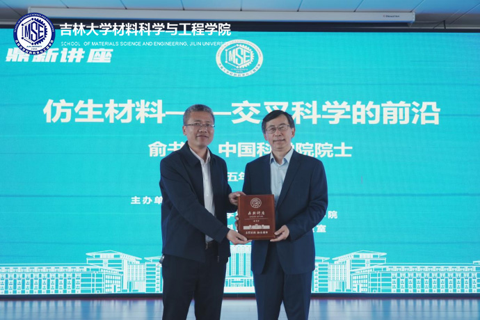 院长张立军教授主持讲座,并为俞书宏院士颁授鼎新讲座纪念牌。
