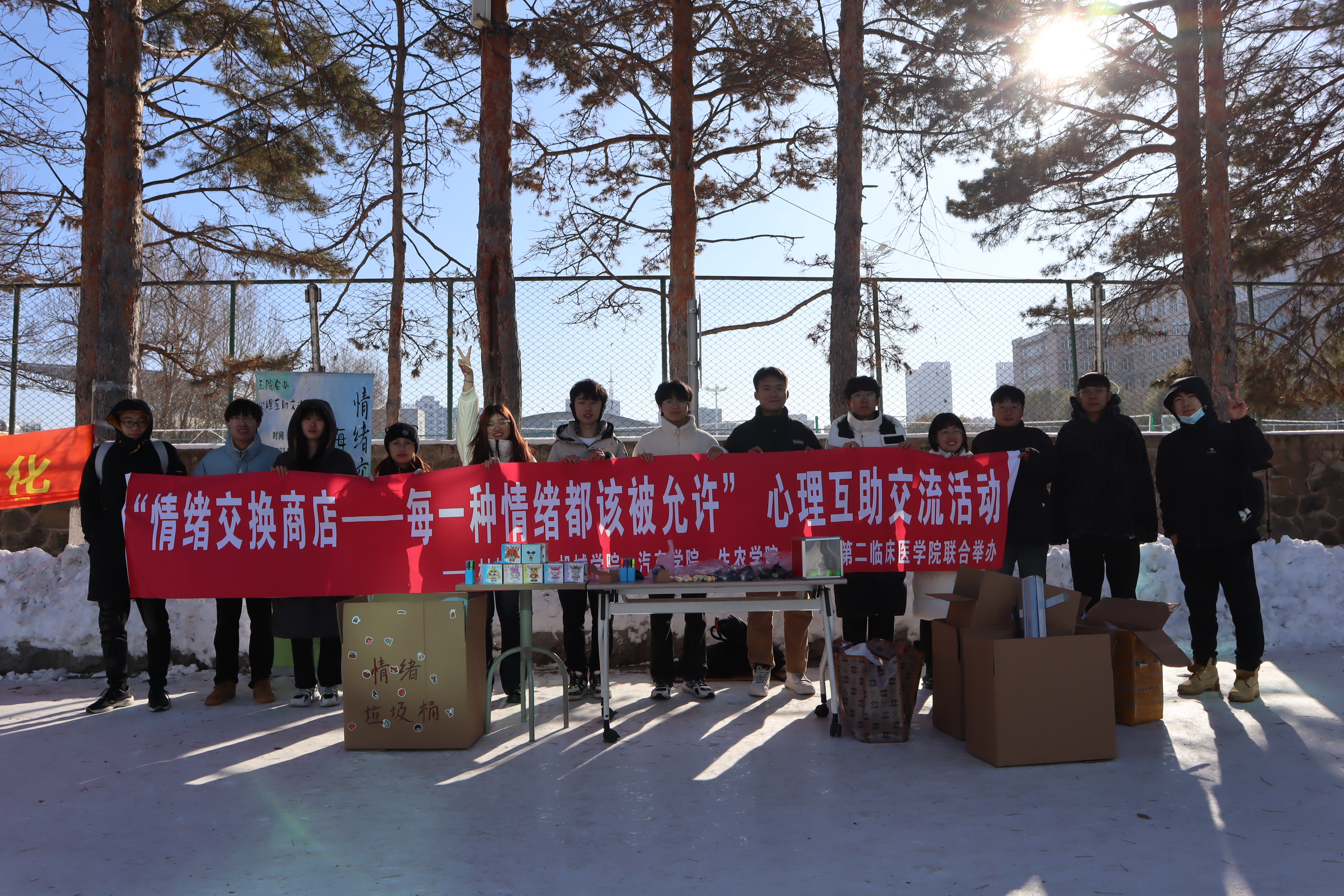 联合汽车工程学院、白求恩第二临床医学院、机械与航空航天工程学院、生物与农业工程学院于2023年11月11日在南岭校区二餐厅、四餐厅前举办“情绪交换商店”心理互助交流活动。