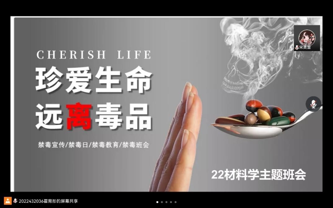 研究生禁毒教育工作,推动我校禁毒宣传教育工作向纵深发展,2022年11月7日,22级材料学研究生开展了“珍爱生命·远离毒品”宣传教育线上班会,引导同学们了解禁毒知识、认清毒品危害,自觉远离毒品,增强同学们防毒、拒毒的意识和能力,预防和减少学生涉毒违法犯罪,营造和谐校园。