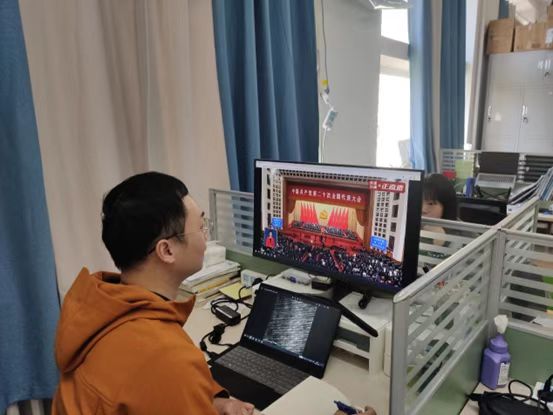 组织全体博士研究生党员在线观看,同学们迫不及待且自发地提前打开直播,以热烈而真挚的心迎接二十大的到来。