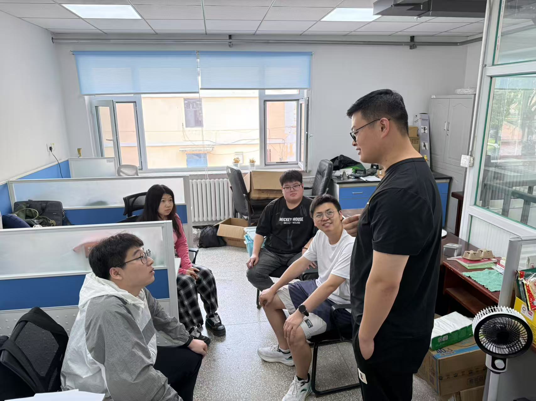 6月16日,学院党委副书记邵俊涛老师与研究生辅导员赵熙来老师一同走访了研究生工作室及南岭校区六公寓,实地了解同学们的科研进展、日常学习状态和工作环境,并检查了寝室环境卫生与违章电器使用情况。在走访检查过程中,邵俊涛老师希望同学们合理安排时间,保持良好生活习惯,坚定科研信心,以更稳定的状态投入科研工作和日常学习中。同时,就学术发展、职业规划等方面与同学们分享了自己的经验和建议,希望大家保持积极的心态,稳步推进各项科研工作。