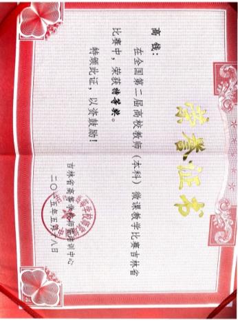 2. 全国第二届高校教师(本科)微课教学比赛,特等奖,获奖人:高钱,吉林省高等学校教师培训中心,2015.05.18